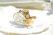 飾りの石たちは同系色のシンプルな石たちでまとめました。一粒だけ、揺れるアクアマリンの雫がアクセントになってます。