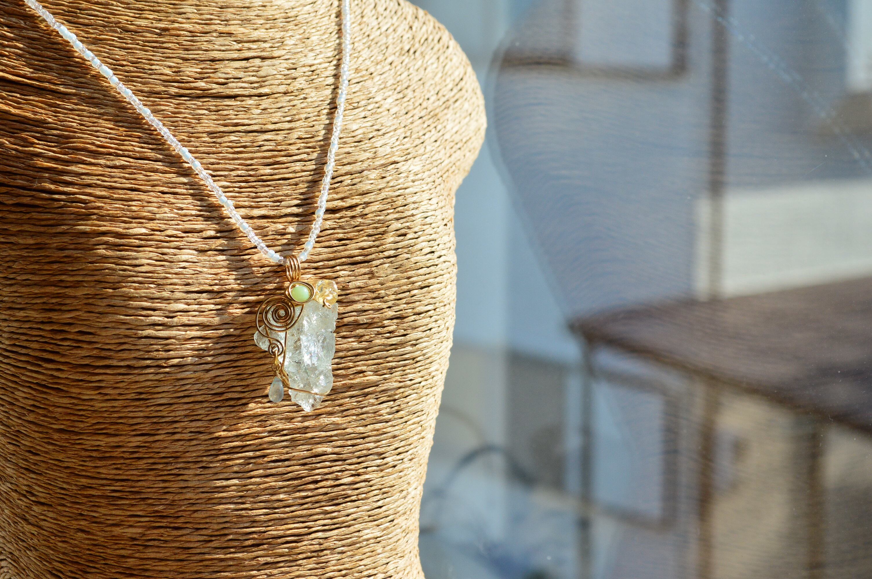無色透明なベリル、ゴシェナイト原石の美しさを堪能していただくペンダントトップになります!