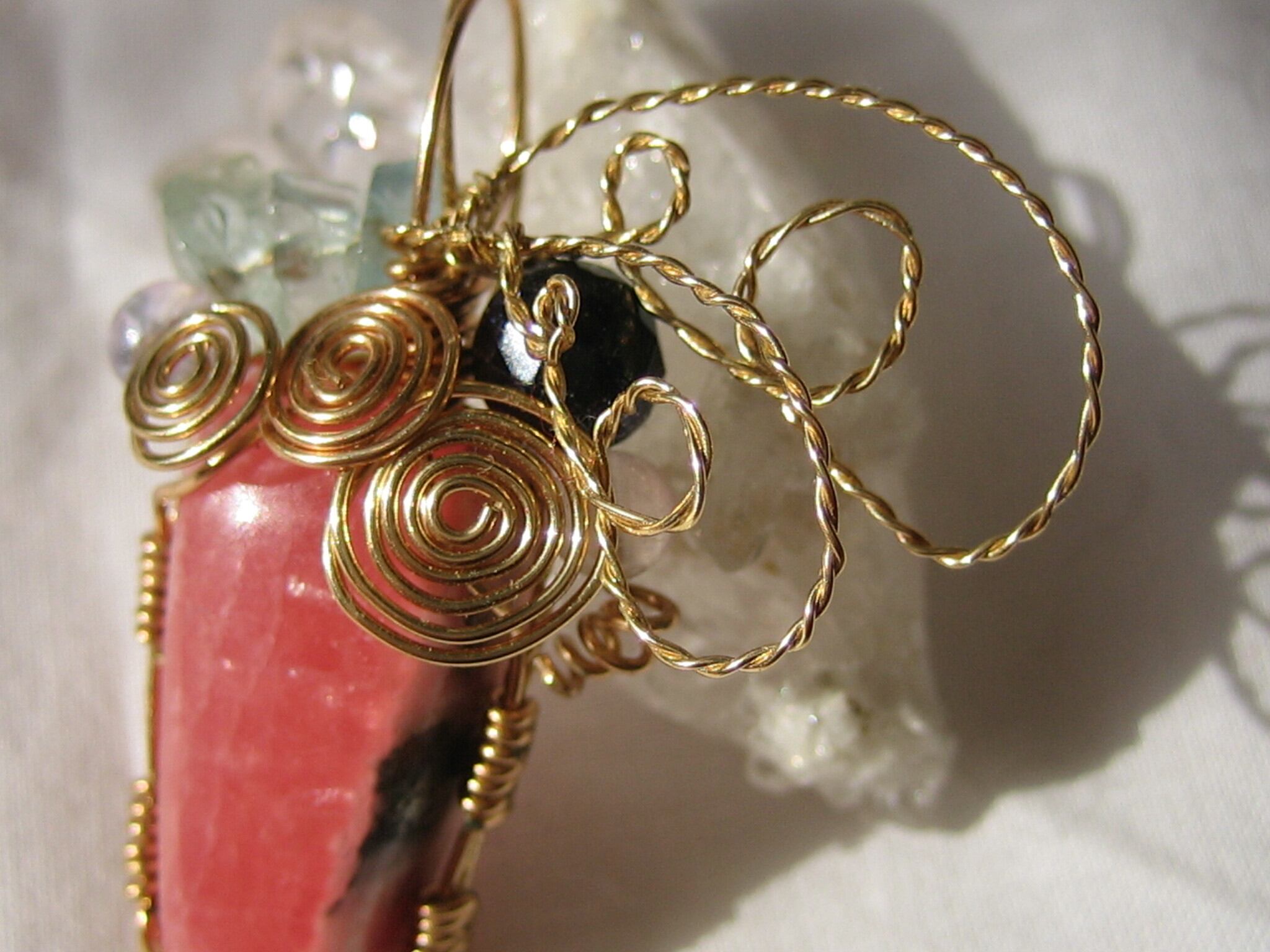 こちらの作品は、ワイヤーで羽飾りを作っております。また、側面にはワイヤーのスパイラルもございます。