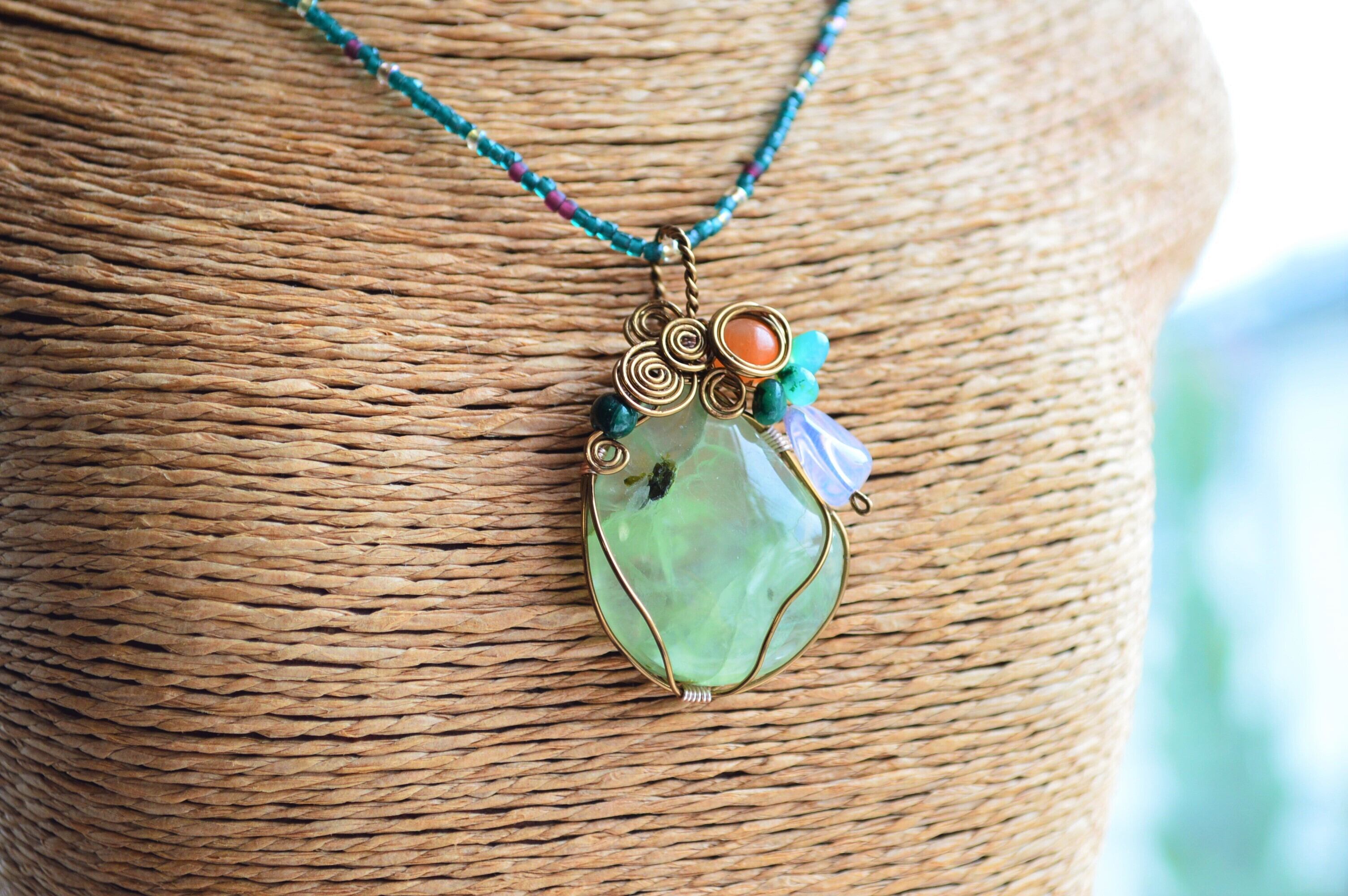 フリーシェイプの変則的なカボションなので、ワイヤーの掛け方は慎重に、でも美しく!を心がけて制作しました。流れるようなワイヤーのライン、有機的で色気があってお気に入りのポイントです!(自画自賛・・・)