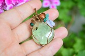 ジューシーなアップルグリーンのプレナイトに、これもジューシーなオレンジカルサイトをアクセントに。ワイヤーもガンメタで、「とっても美味しそうなスピリチュアルな果実」に仕上がりました(^^)